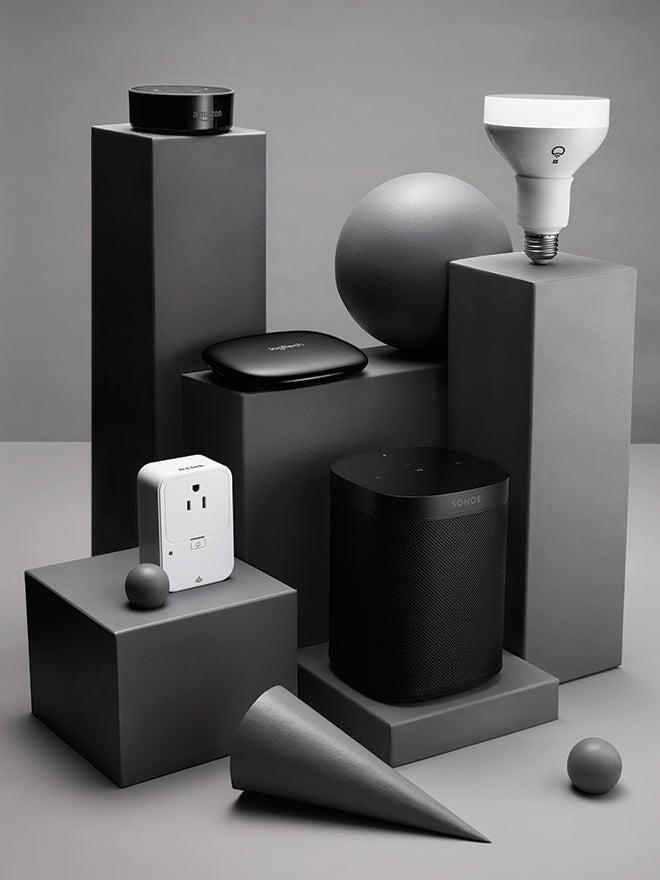 Alexa relays the shindig-starting message to the Logitech Harmony Hub, which connects to all your devices—from appliances to home theaters—via Wi-Fi. The console is what gets your lights in sync with your speakers, and so on.