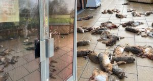 About 50 dead hares, a barn owl, and a kestrel were left outside Broughton Community Shop.